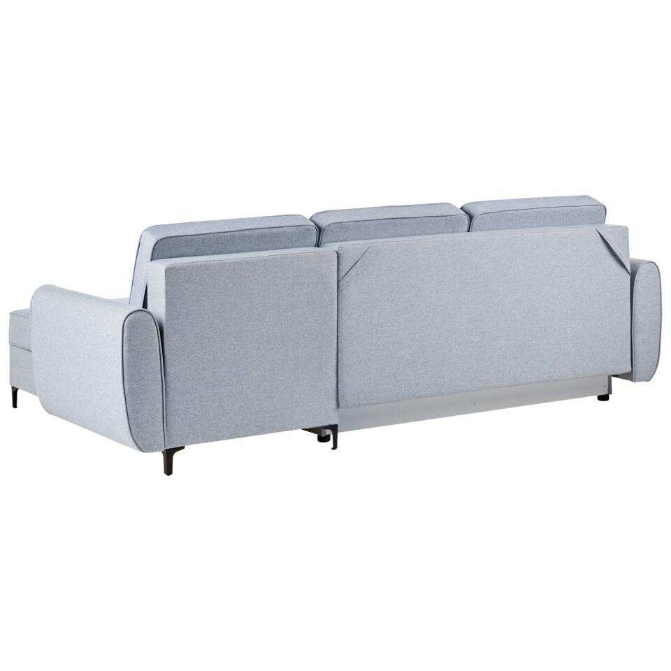 Gestoffeerde slaapbank met opbergruimte. Deze strakke hoekbank, bekleed met duurzame polyester stof, biedt een perfecte mix van stijl en functionaliteit. De bank is ontworpen met een ruim opbergvak en een slaapbankfunctie en kan gemakkelijk worden omgetoverd tot een comfortabele slaapplaats voor gasten. De strakke lijnen en getufte details zorgen voor een modern tintje, waardoor het een ideaal middelpunt is voor moderne interieurs.